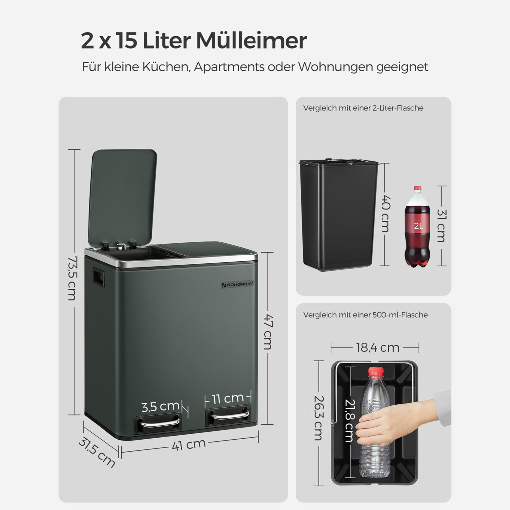 • Szelektív hulladékgyűjtés két 15 literes rekesszel