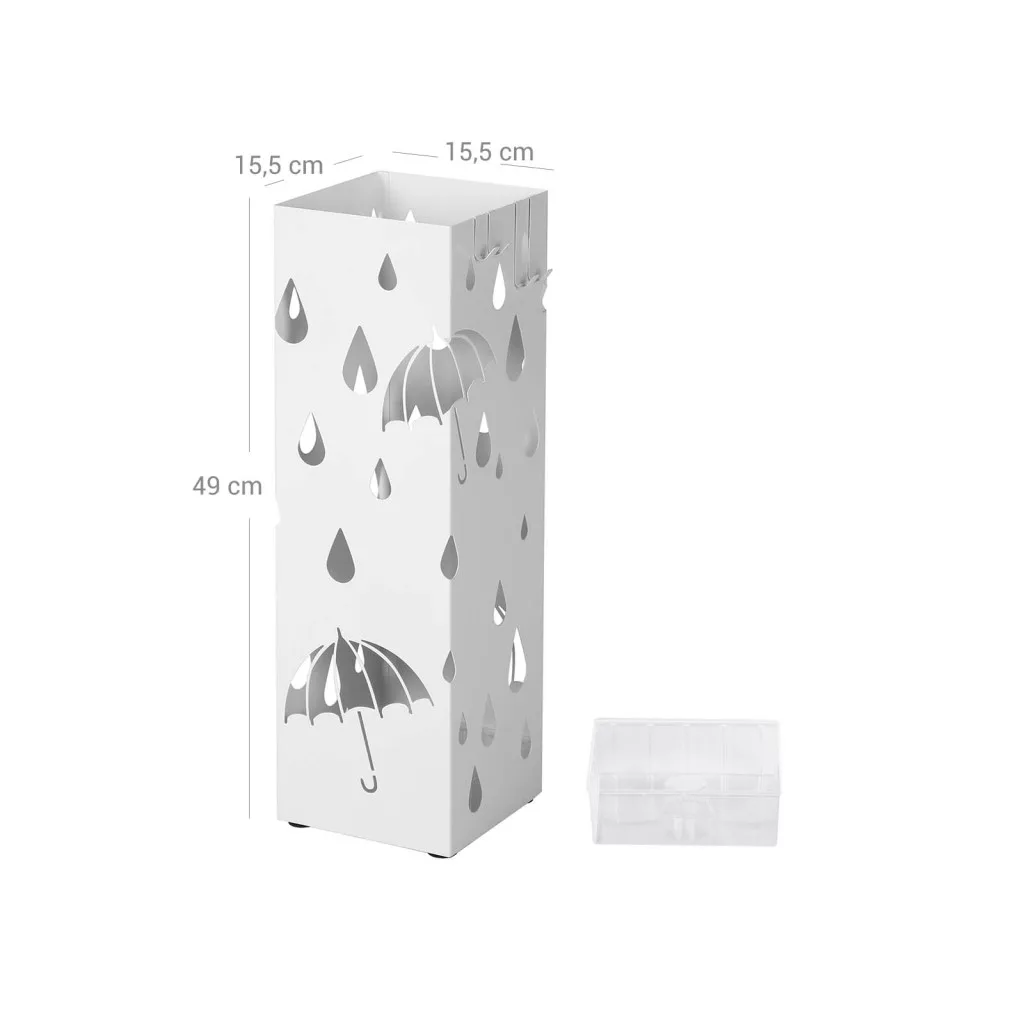 SONGMICS Fém Esernyőtartó Állvány Csepptálcával és 4 Akasztóval Fehér