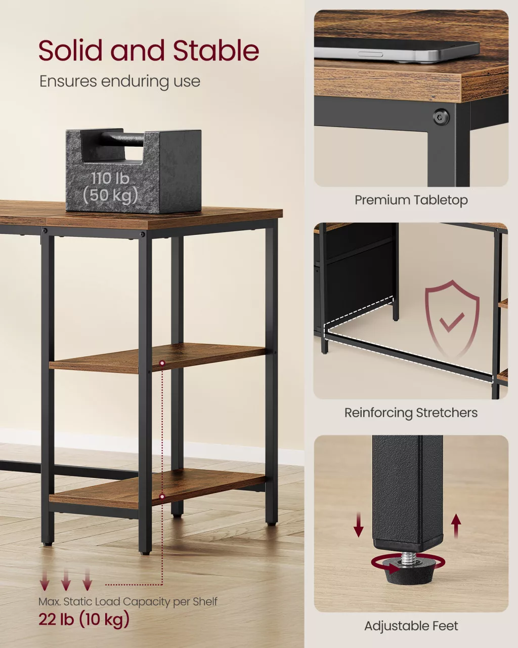 A VASAGLE ipari stílusú számítógépes asztal 160 cm széles munkafelületet, 3 polcot és 2 fiókot kínál az otthoni irodában való hatékony munkavégzéshez. A rusztikus barna és matt fekete színvilág elegáns megjelenést biztosít.