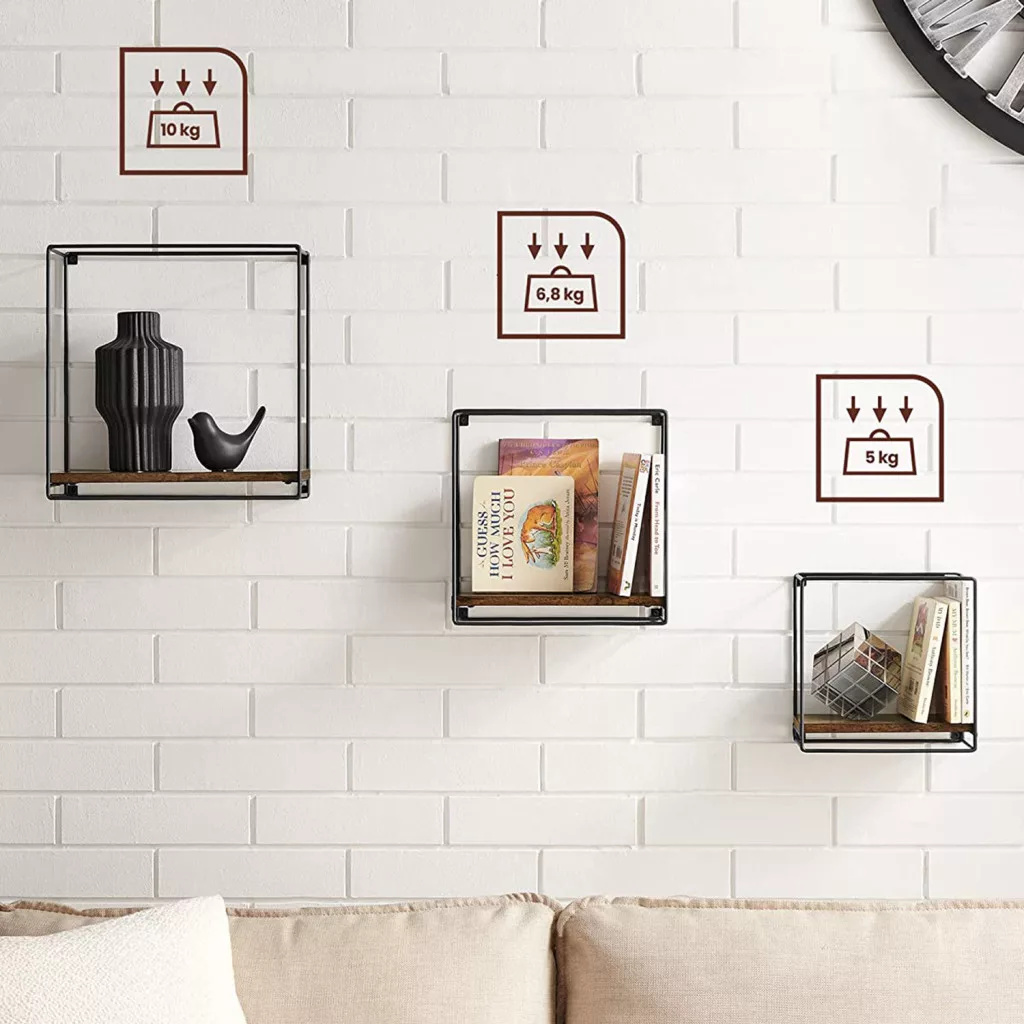 A VASAGLE fali polc szett egyesíti a vintage hangulatú rusztikus barna fát és a modern fekete fémkeretet, létrehozva egy időtlen és sokoldalú tárolási megoldást. A három különböző méretű polc rugalmas elrendezési lehetőségeket kínál, így tökéletesen illeszkedik bármely enteriőrbe.