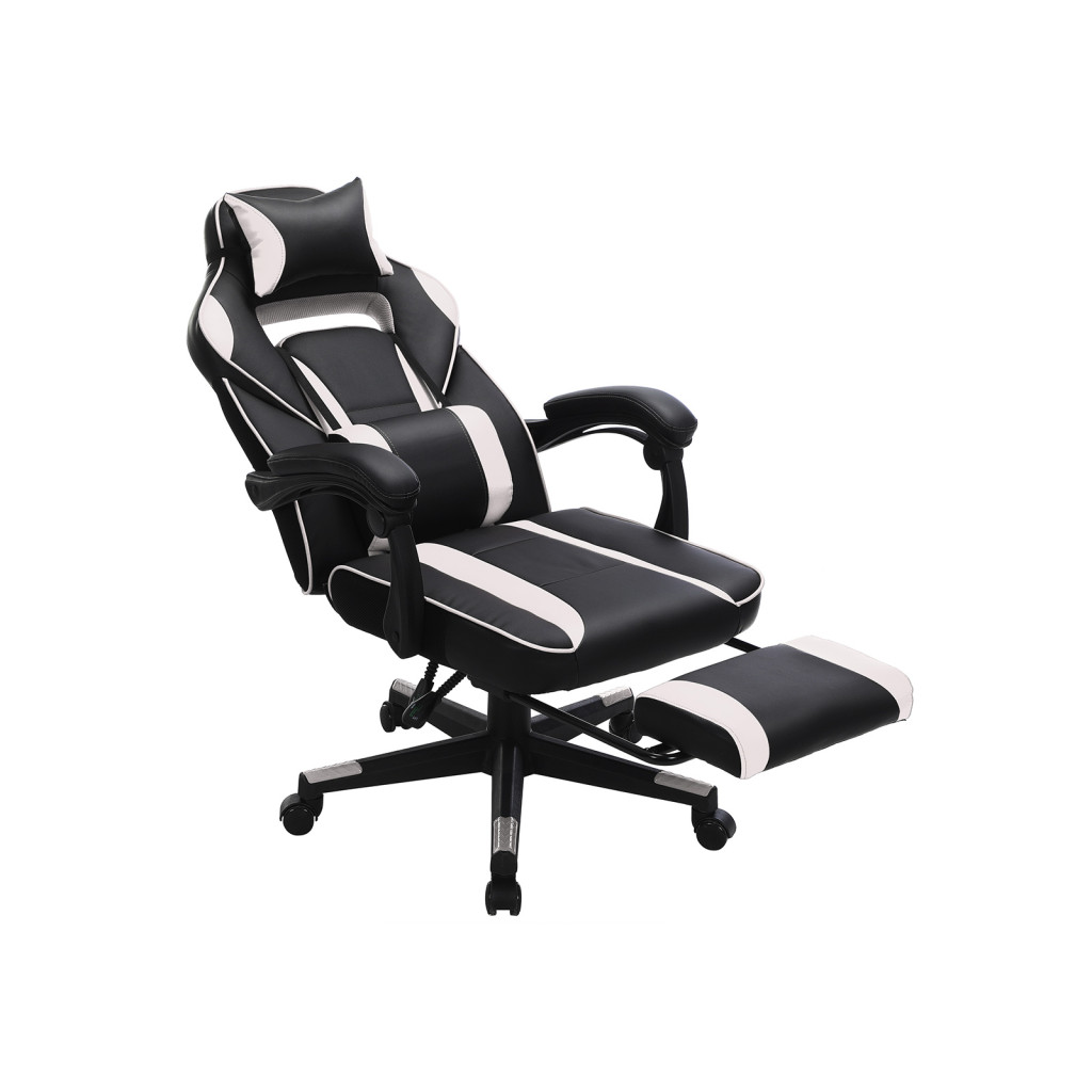 SONGMICS Racing Gamer Szék Lábtartóval Ergonomikus Fekete-Fehér
