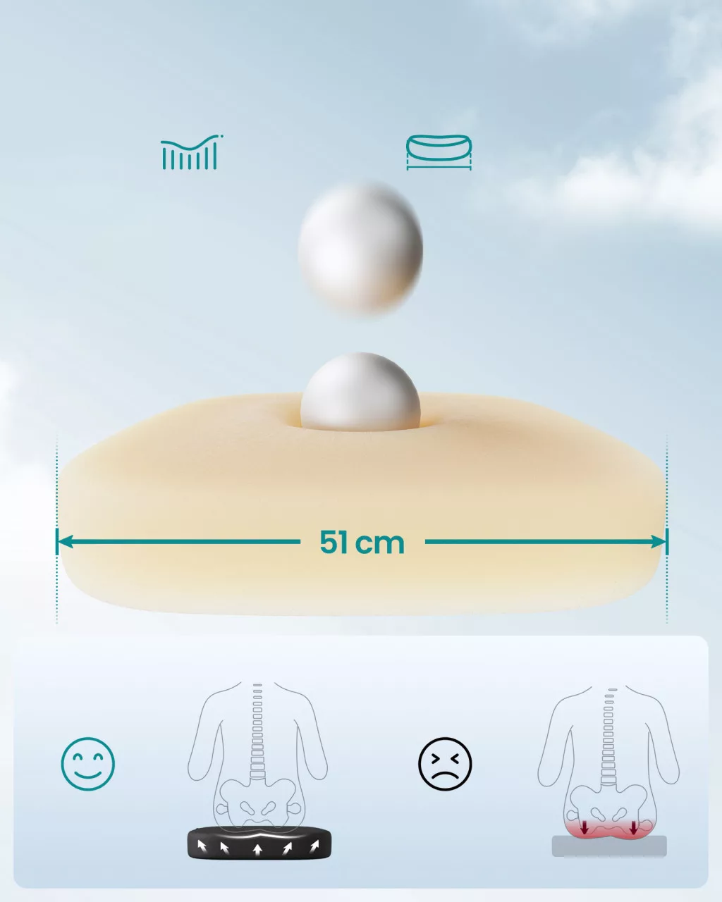 • Nagy sűrűségű habszivacs ülőfelület: A 7,6 cm vastag párnázat hatékonyan csökkenti a csípőre nehezedő nyomást, így órákig kényelmesen ülhet