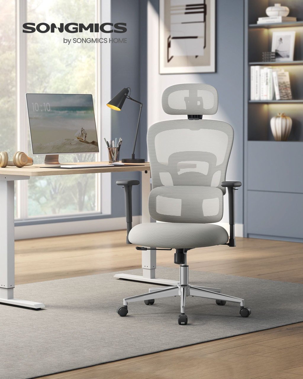 SONGMICS Ergonomikus Irodai Szék Hálós Háttámlával Fehér-Szürke