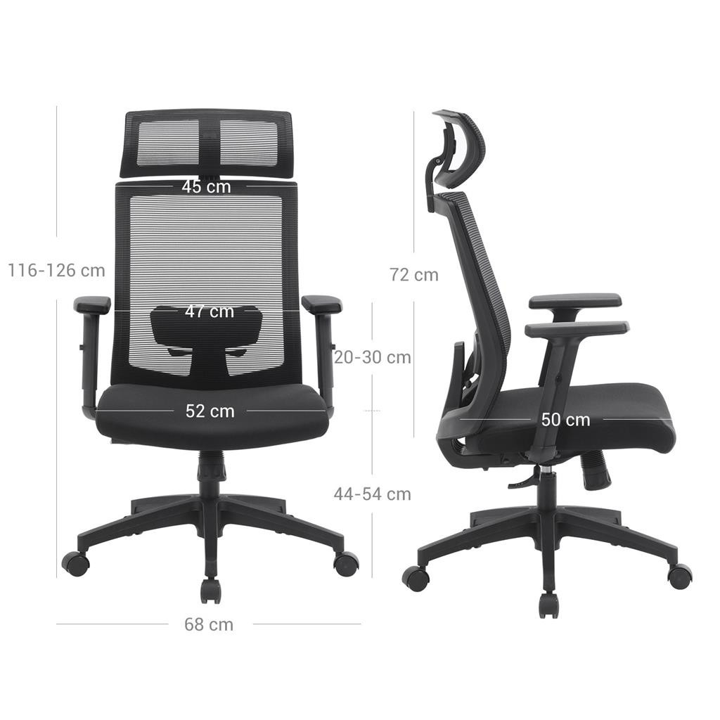 SONGMICS Ergonomikus Hálós Irodai Szék Fejtámasszal Fekete