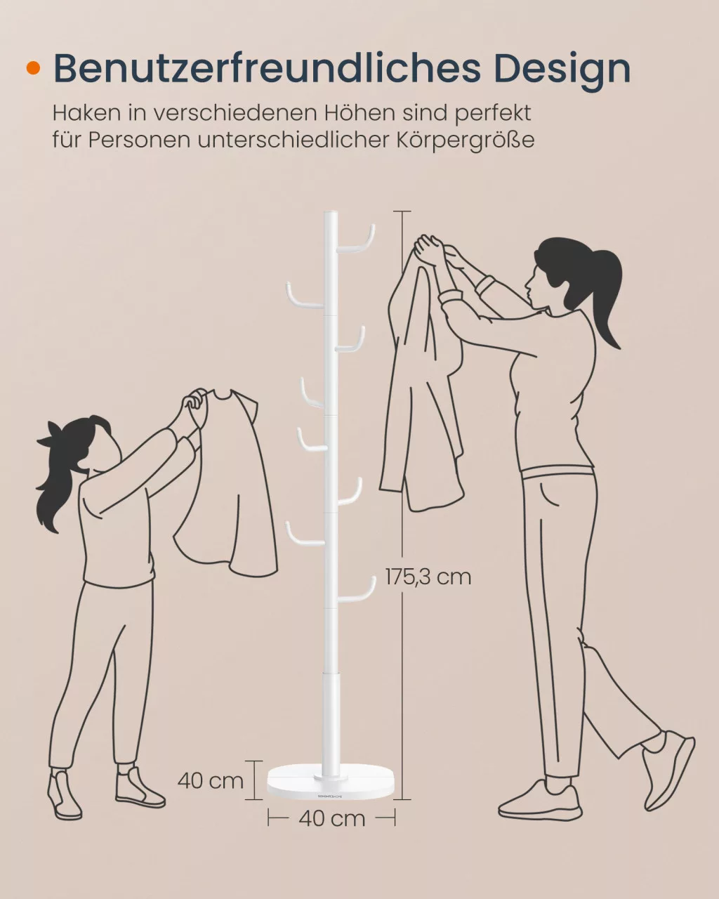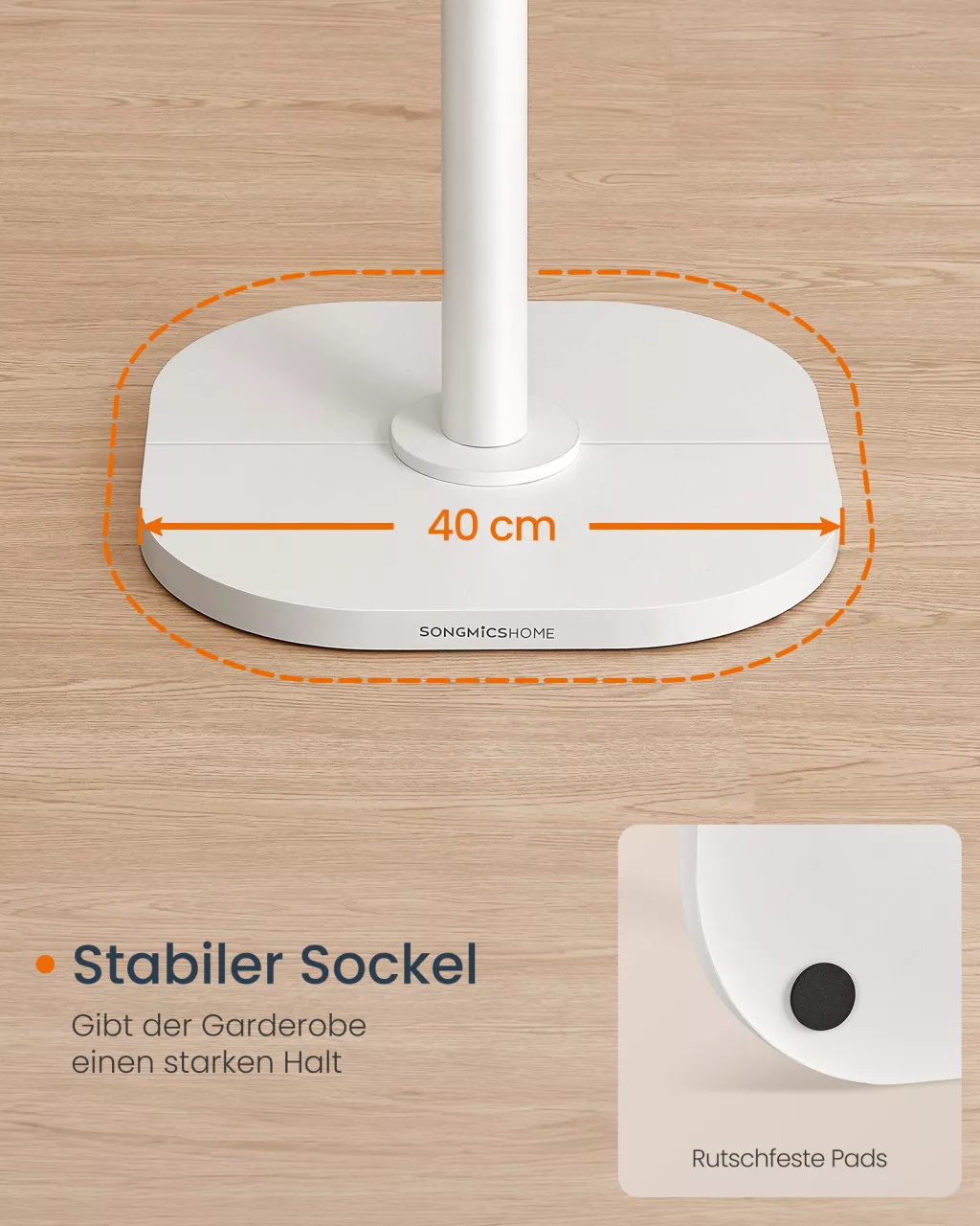 • Stabil és biztonságos: A 40 kg összterhelhetőség és a széles, 40 x 40 cm-es talp kiváló stabilitást biztosít, így biztonságosan tárolhatja értékes ruhadarabjait