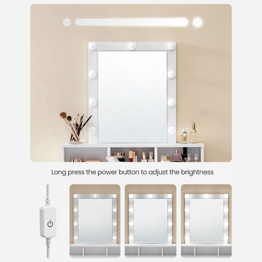 VASAGLE Modern Fésülködőasztal LED Világítással Fehér