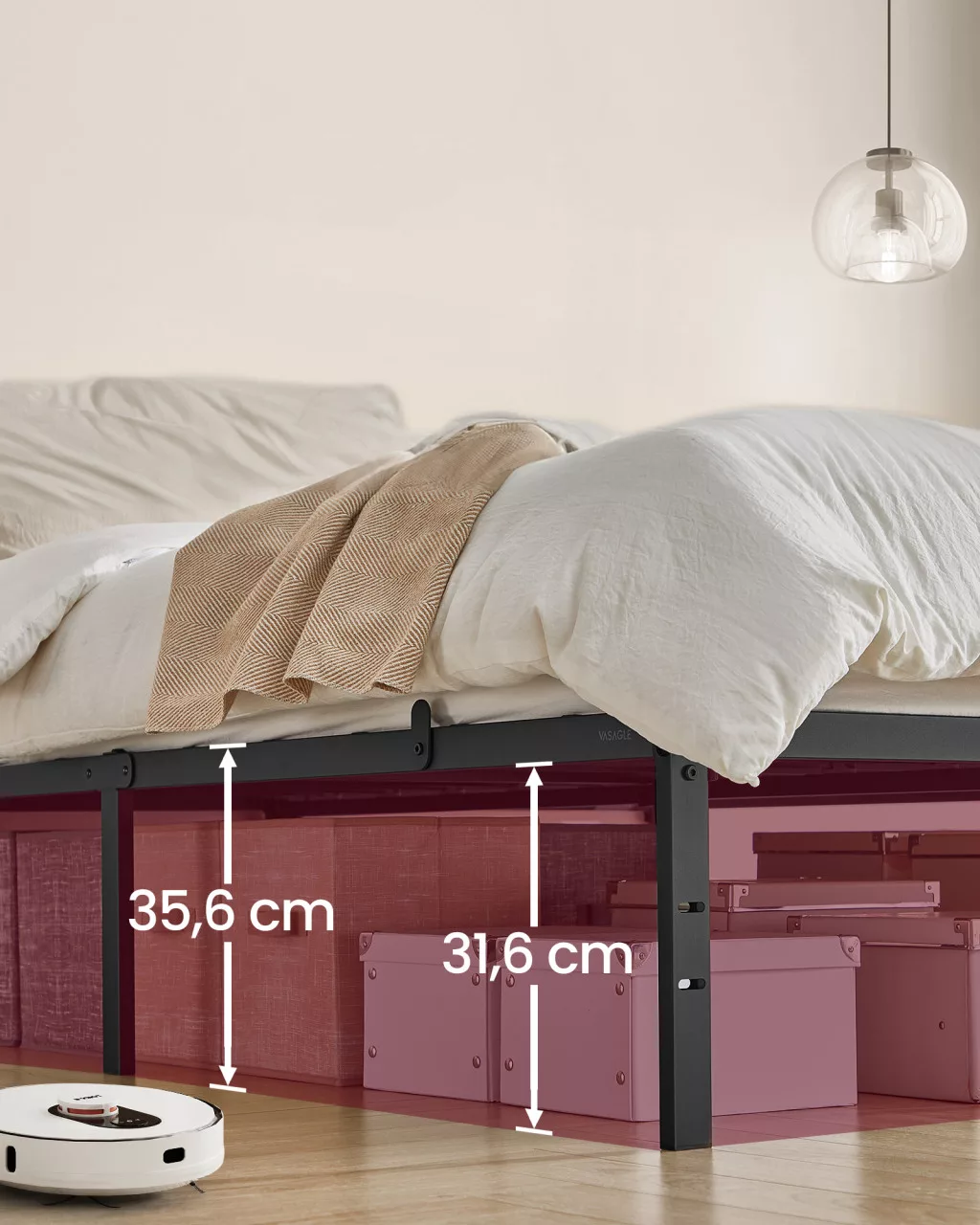 • Bőséges tárolóhely: A 31,6 cm magas rés az ágy alatt elegendő helyet biztosít tárolódobozok számára, miközben a robotporszívó is könnyen átfér alatta