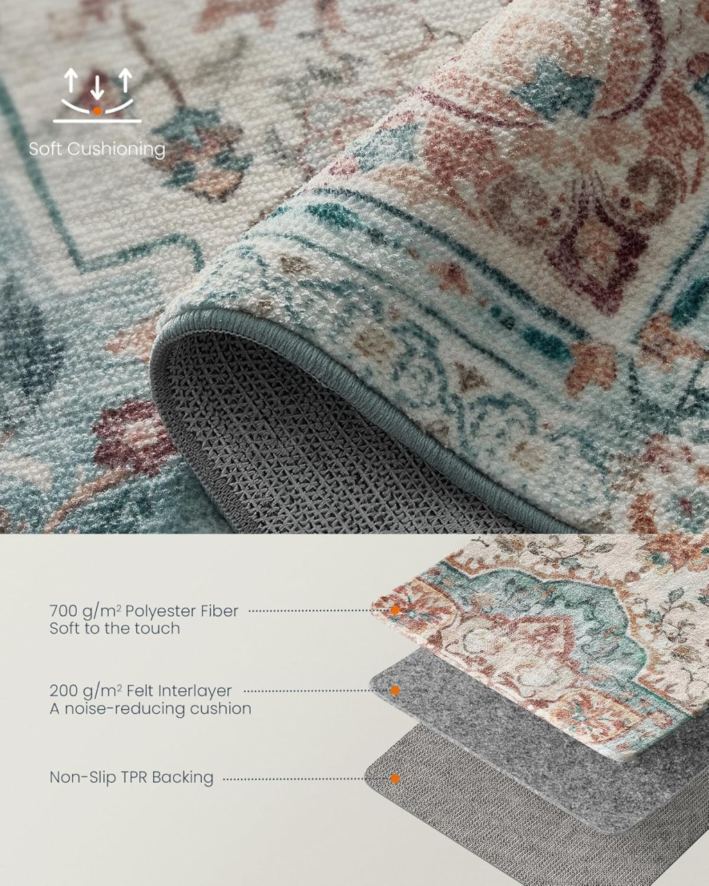SONGMICS HOME Vintage Stílusú Türkiz Szőnyeg Csúszásmentes Poliészter