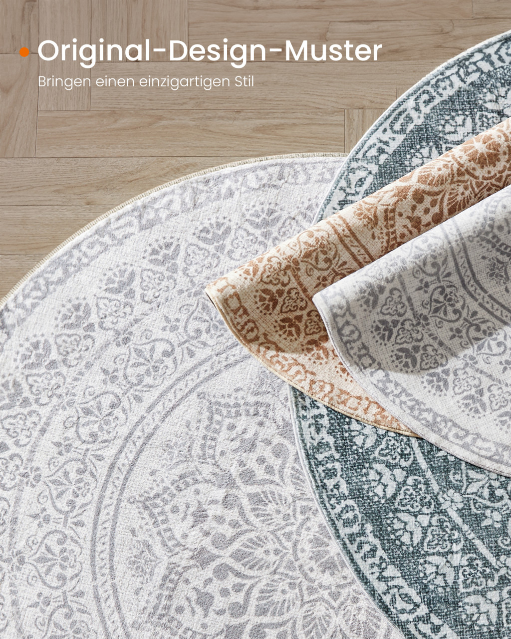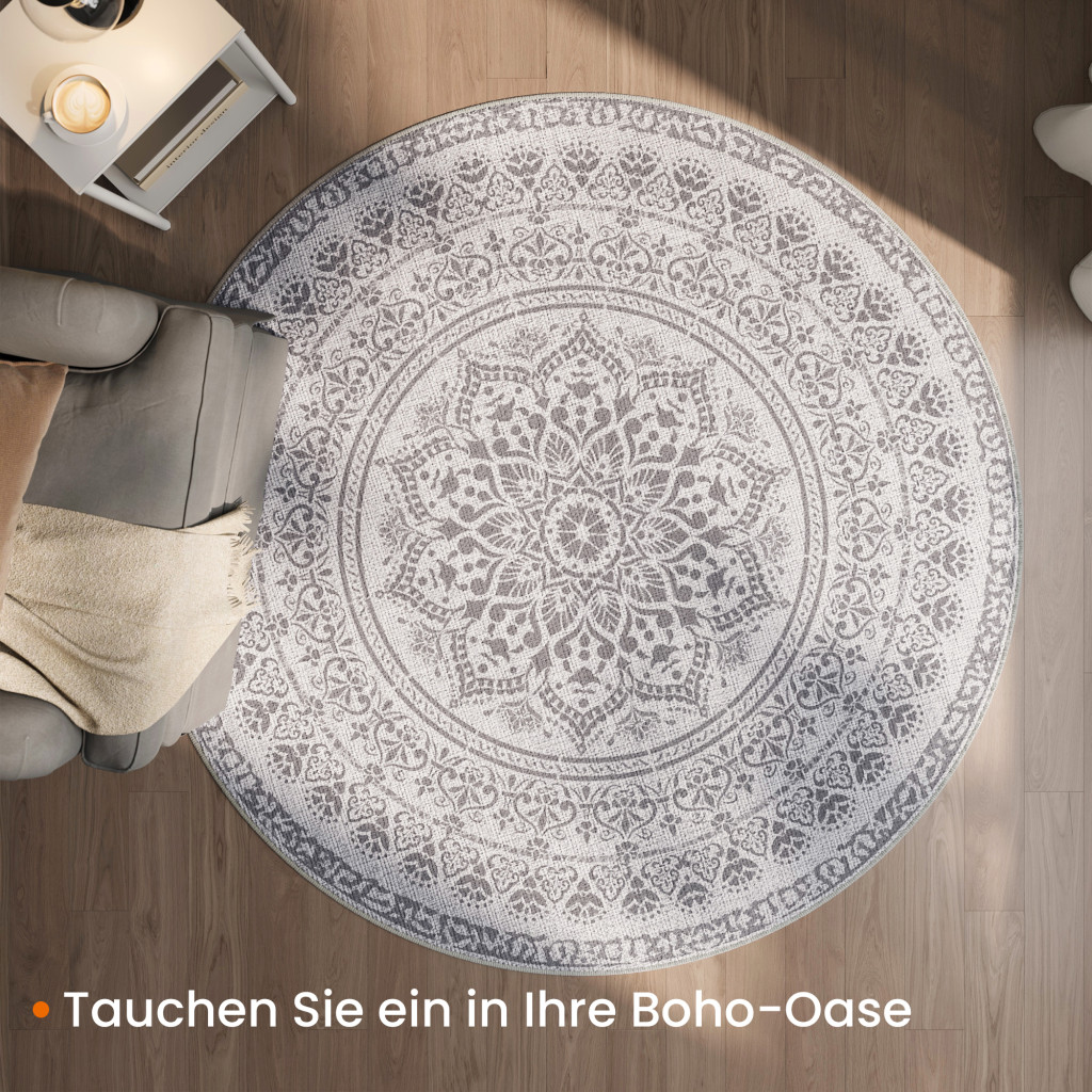 SONGMICS HOME Boho Kerek Szőnyeg Galambszürke Mandala Mintával