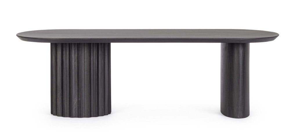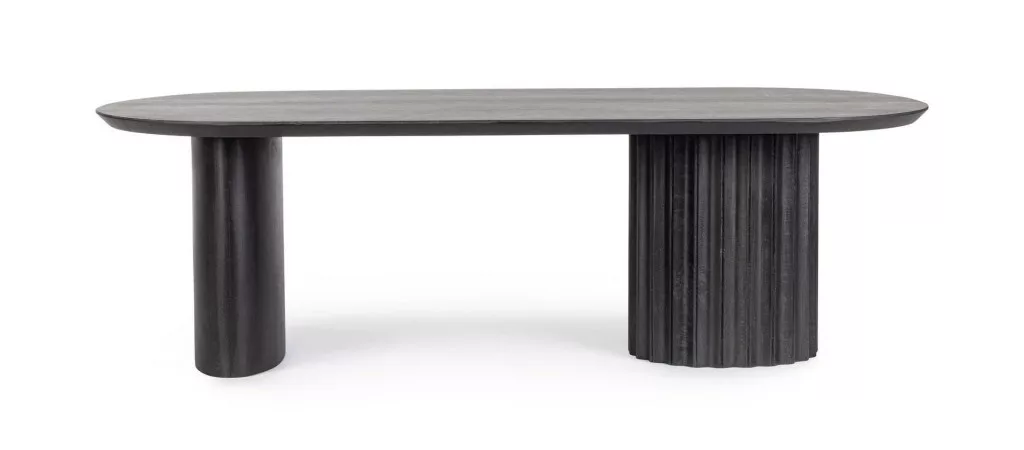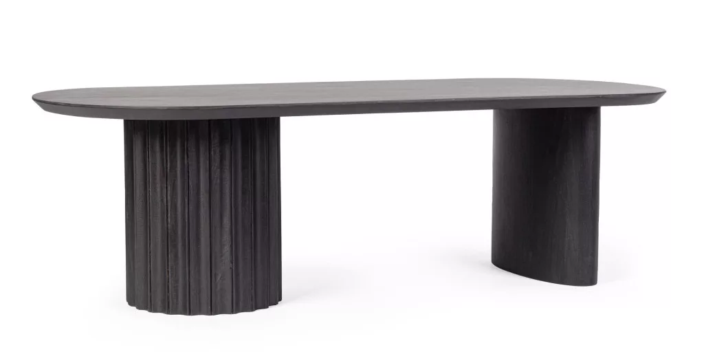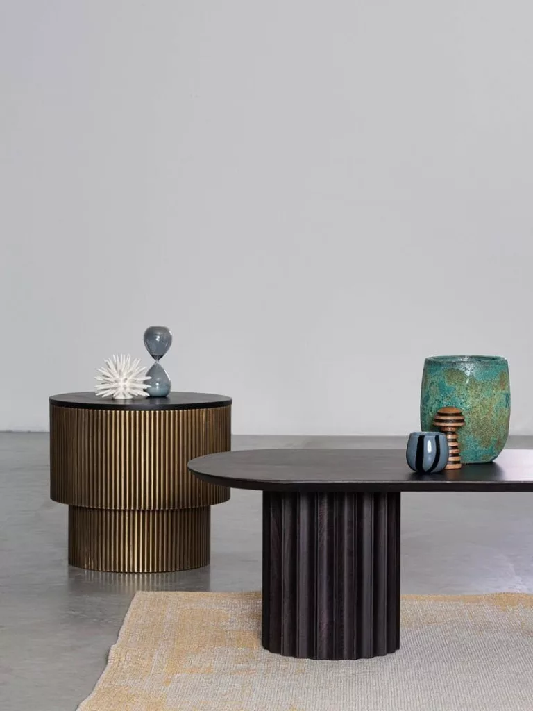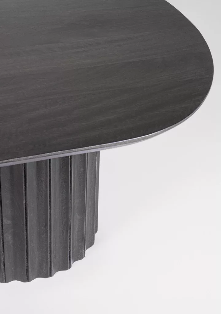 Az Orissa dohányzóasztal a modern lakberendezés kiemelkedő darabja, amely ötvözi a természetes mangófa melegségét az innovatív formatervezéssel. A különleges, bordázott lábszerkezet és a letisztult asztallap tökéletes harmóniát alkotnak, míg a fekete szín időtlen eleganciát kölcsönöz a bútornak.
