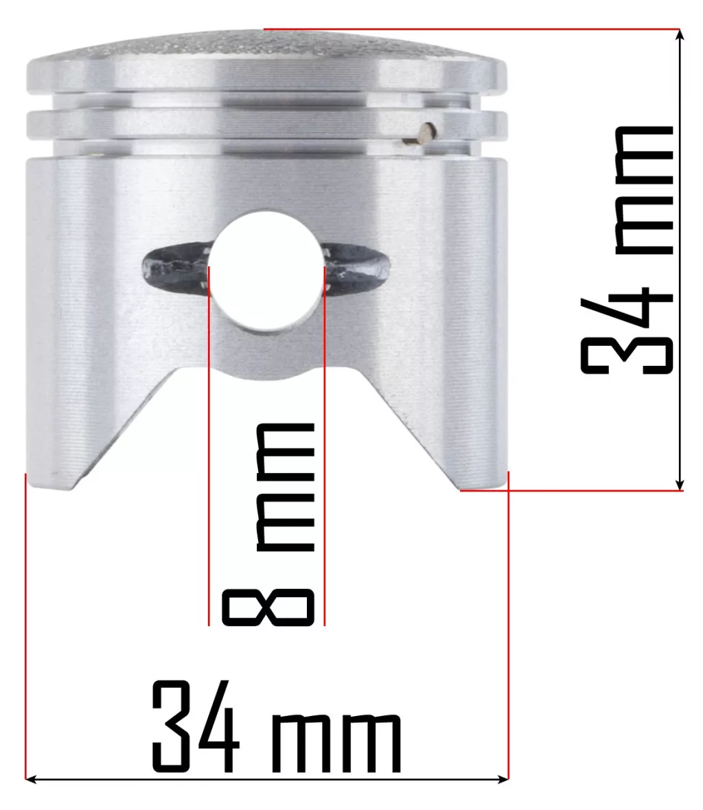 Professzionális, 34 mm-es henger és dugattyú készlet Red Technic és számos egyéb márkájú benzinmotoros lombfúvó teljes körű motorfelújításához.