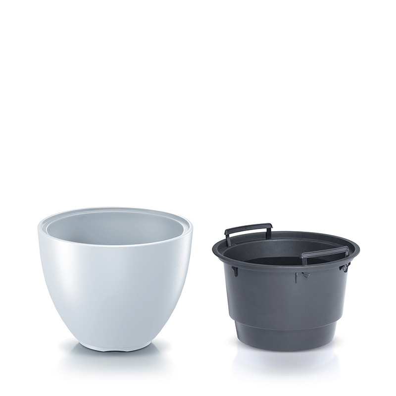 A cserép dupla falú kialakítása extra védelmet nyújt a gyökereknek, míg a beépített betét megkönnyíti a növények átültetését és gondozását. Az időtálló anyaghasználat és a kifinomult formavilág hosszú évekig tartó esztétikus megjelenést garantál.