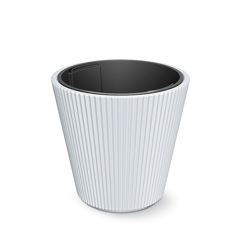 A Milly kaspó sorozat legújabb darabja ez a 39 cm átmérőjű, bordázott felületű fehér virágcserép, amely egyedi megjelenésével azonnal a lakás díszévé válik. A függőleges bordázat nem csak esztétikai elem, de strukturális stabilitást is biztosít a terméknek.