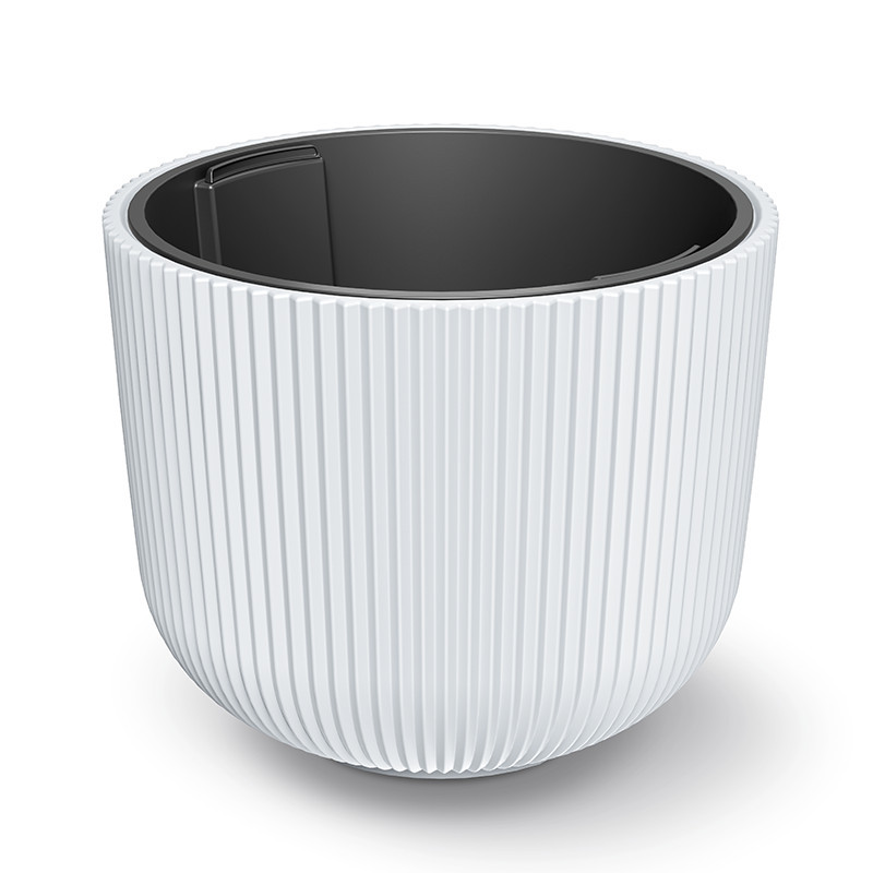 A Milly kaspó sorozat legújabb darabja ez a nagyméretű, bordázott felületű fehér virágtartó, amely egyesíti a modern design és a praktikus használhatóság előnyeit. A függőleges bordázat különleges textúrát kölcsönöz a kaspónak, míg letisztult formája tökéletesen illeszkedik bármilyen lakberendezési stílushoz.