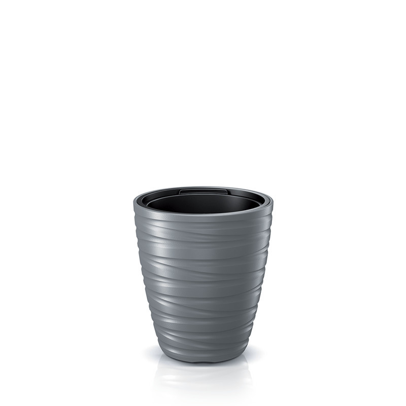 Modern kialakítású, hullámvonalas mintázatú virágtartó kivehető betéttel, amely tökéletes választás kül- és beltéri növények számára.