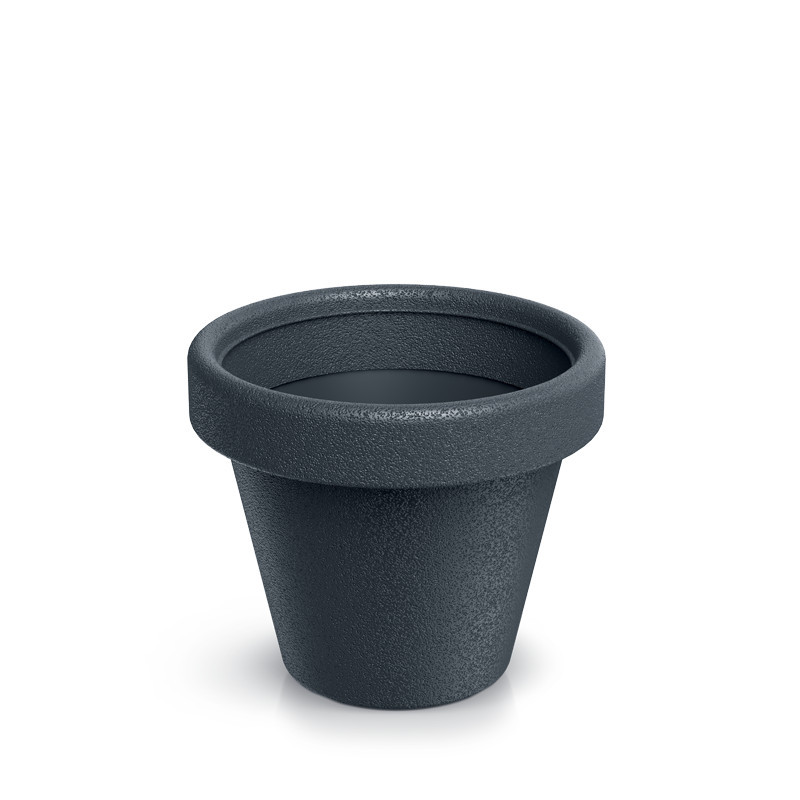 Klasszikus kialakítású, UV-álló antracit virágcserép fordított kúp formával és domborított peremmel, mely tökéletes választás mind beltéri, mind kültéri növények számára.