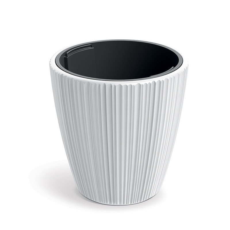 Elegáns, bordázott felületű fehér kaspó, amely tökéletes otthona lehet nagyobb szobanövényeinek. 15 literes űrtartalmával ideális választás közepestől nagyobb méretű növények számára.