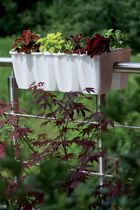 Elegáns, nagy méretű erkélyláda speciális rögzítési rendszerrel, amely mindkét oldalról dekoratív látványt nyújt. 18 literes űrtartalmával ideális nagyobb növények neveléséhez.