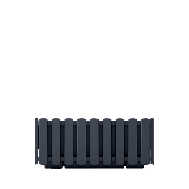 Modern, kerítés-hatású virágláda antracit színben, amely egyedi megjelenést kölcsönöz növényeinek.