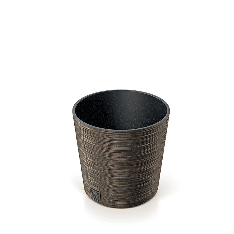 A Furu Round Low ECO virágtartó tökéletesen ötvözi a természetes megjelenést a fenntarthatósággal. A különleges felületi struktúrának köszönhetően autentikus fahatást kelt, miközben tartós és időtálló anyagból készült. A kávébarna színárnyalat harmonikusan illeszkedik bármilyen belső térbe.
