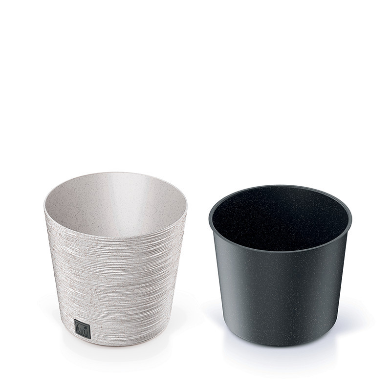 A Furu Round Low ECO virágtartó egyedülálló módon ötvözi a természetes megjelenést és a környezettudatos tervezést. A különleges felületi struktúra valódi fára emlékeztető textúrát kölcsönöz, míg a 33%-os fatartalom biztosítja a fenntartható alapanyag-felhasználást.