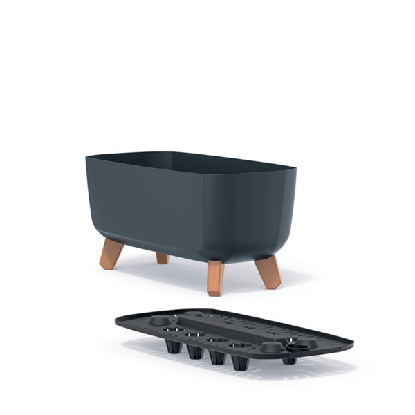 A Gracia Case virágtartó egyedi megjelenését a letisztult formavilág és a fa hatású lábak harmóniája adja. A hosszúkás kialakítás tökéletes teret biztosít többféle növény együttes beültetésére, míg a beépített perforált alátét gondoskodik a megfelelő vízelvezetésről.