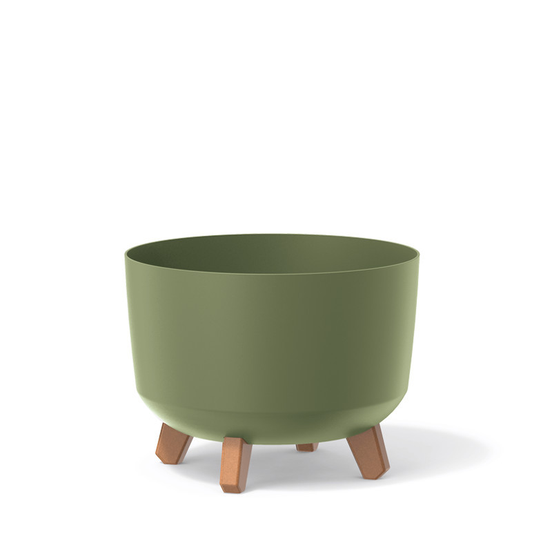 A 29 cm átmérőjű virágtartó ideális méretű mind szobanövények, mind kisebb bonsai fák számára. A földzöld szín természetes megjelenést biztosít, miközben a stabil lábak megemelik a növényt a padlószintről, ezzel is fokozva a dekoratív hatást.
