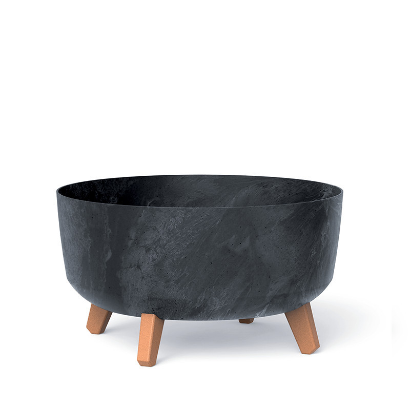 A Gracia Low Beton Effect kaspó egyedülálló megjelenést kölcsönöz növényeinek a beton hatású felülettel és letisztult formavilágával. Az antracit színű test tökéletesen illeszkedik a modern lakberendezési trendekhez, míg a fa lábak meleg, természetes kontrasztot teremtenek.
