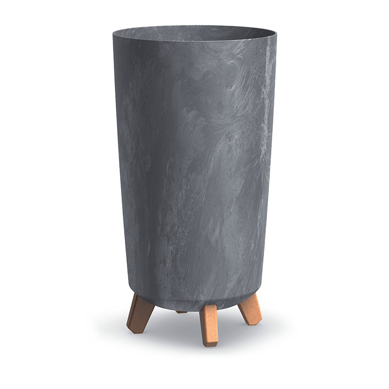 A Gracia Tubus Slim kaspó egyedi megjelenését a beton hatású felület és a karcsú, hengeres forma adja. A fa mintázatú lábak nem csak dekoratív elemként szolgálnak, de praktikusan megemelik a kaspót, így védve a padlófelületet.