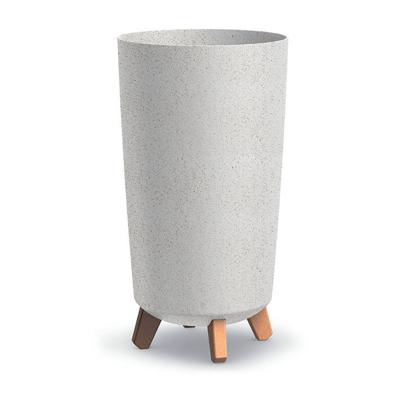 Modern, környezetbarát kaspó 33% faalapanyag tartalommal, egyedi szemcsés felülettel és beépített vízelvezetési rendszerrel.