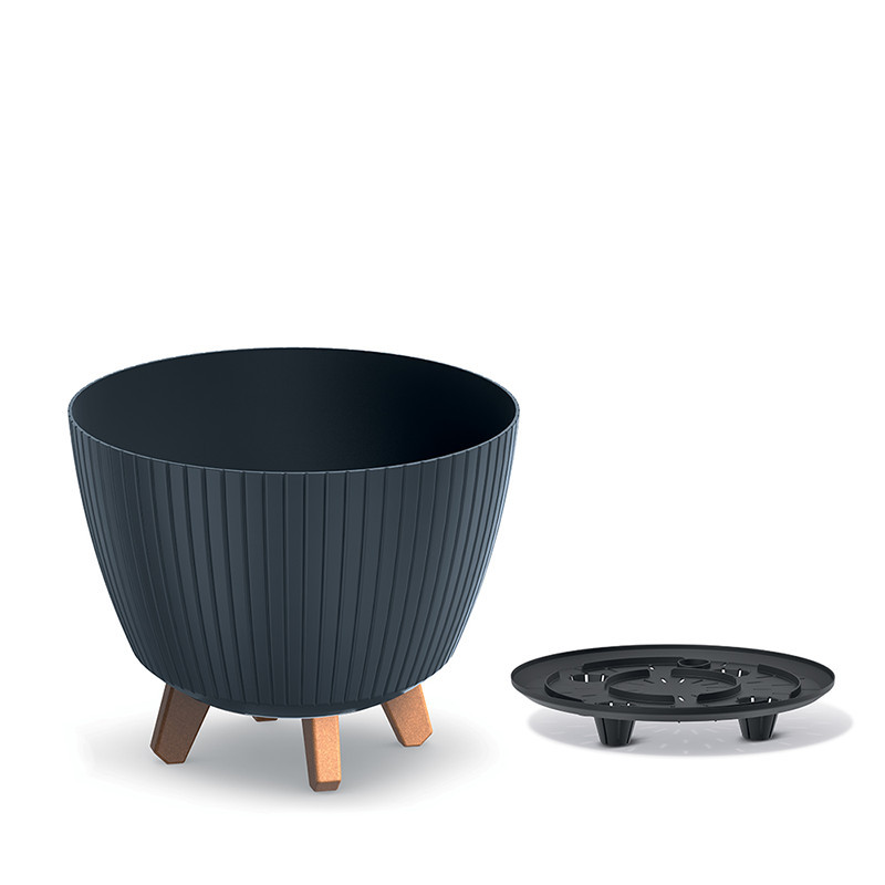 A Lamia kaspó sorozat antracit színű tagja tökéletes választás a modern lakberendezési stílushoz. A bordázott külső felület és a fa lábak harmonikus kombinációja egyedi megjelenést kölcsönöz a terméknek. Az elegáns dizájn mellett praktikus megoldásokat is kínál, mint például a levehető alátét, ami megvédi a padlót a felesleges nedvességtől.