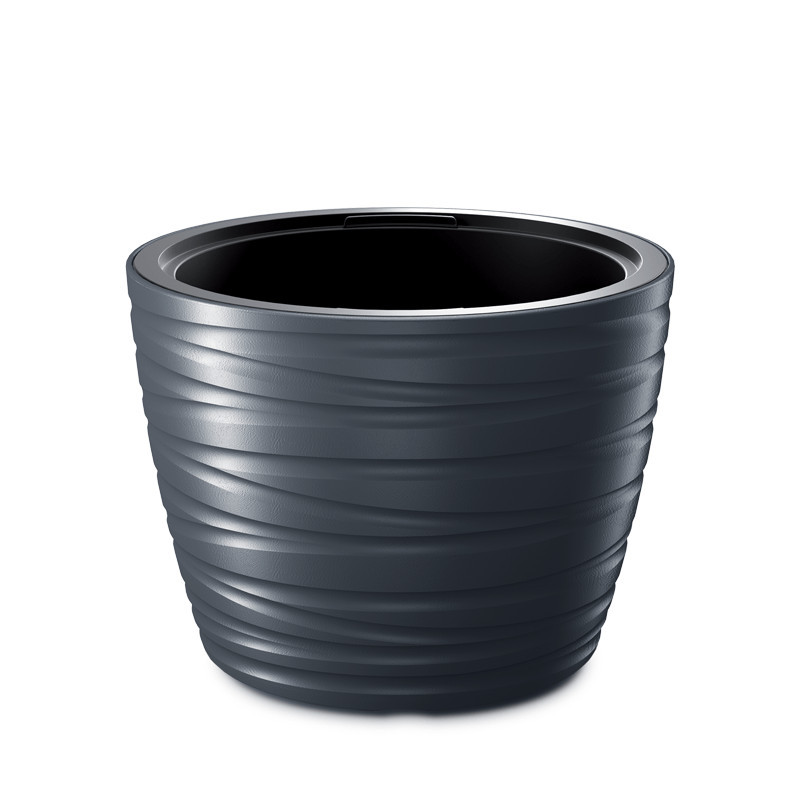 Nagy űrtartalmának köszönhetően ideális választás nagyobb növények, díszfüvek vagy akár kisebb fák számára is. Az antracit szín elegáns megjelenést kölcsönöz, harmonikusan illeszkedik bármilyen kültéri környezetbe.
