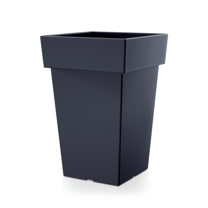 Elegáns, modern vonalvezetésű négyzetes kaspó antracit színben, amely tökéletes választás mind beltéri, mind kültéri növények számára.