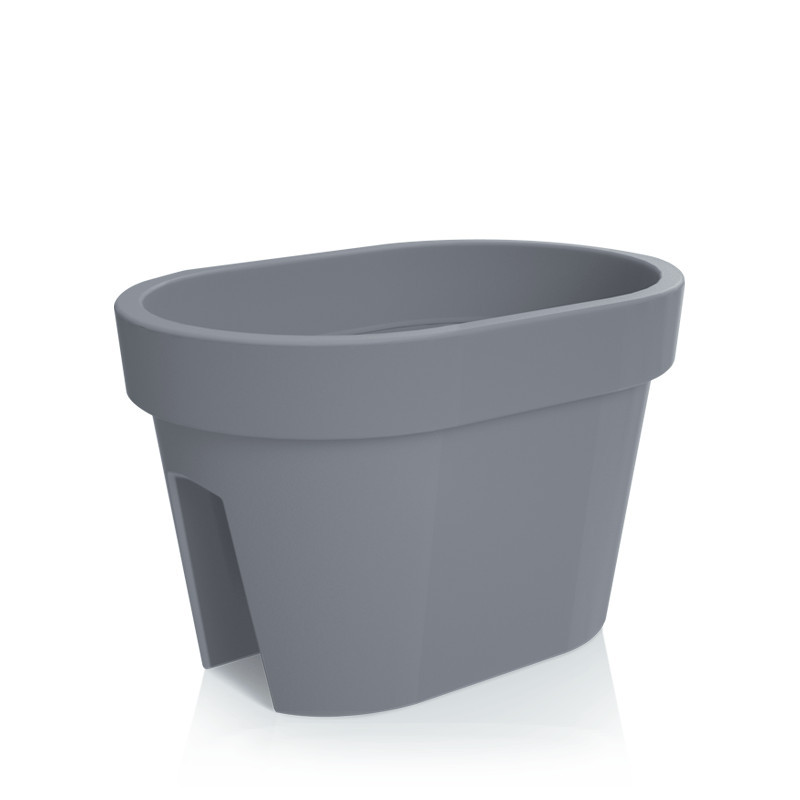 Modern vonalvezetésű, 12,3 literes erkélyláda kőszürke színben, amely tökéletes választás erkélykorlátok díszítésére.