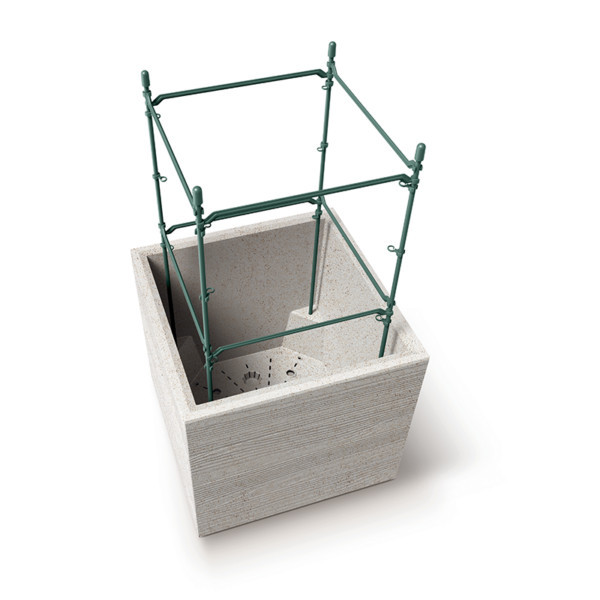 A virágtartó belső betéttel rendelkezik, amely megkönnyíti a növények átültetését és biztosítja a megfelelő vízelvezetést. A beépített görgőknek köszönhetően a nagyobb növények és kompozíciók könnyen mozgathatók.