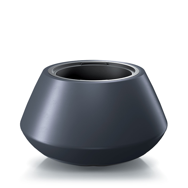 Modern, elegáns virágtartó matt antracit színben, beépített vízelvezetési rendszerrel és 56 literes űrtartalommal.