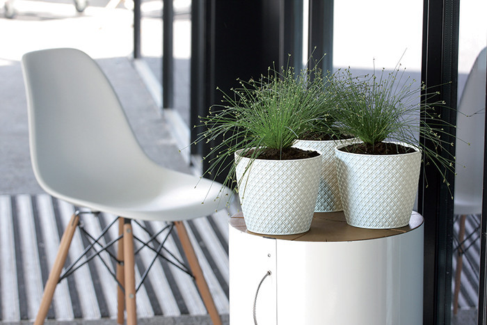 A Prosperplast Orient virágcserép egyedi, rácsmintás felületkialakítással készült, amely a távol-keleti design elemeit ötvözi a modern formavilággal. A hófehér színű cserép különleges textúrája játékos fény-árnyék hatást kelt, miközben időtlen eleganciát sugároz.