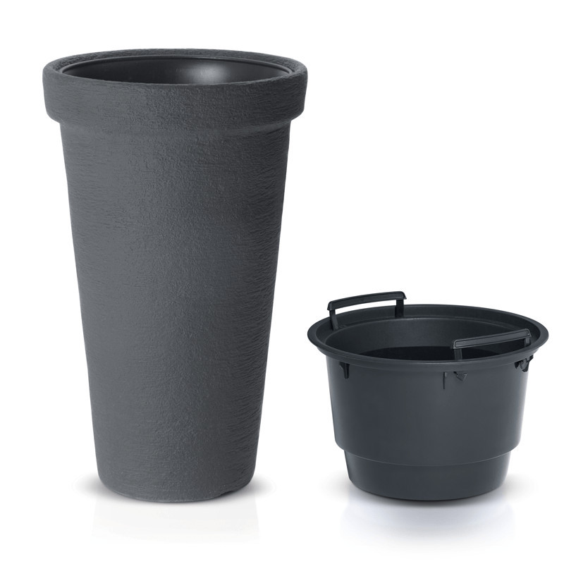 A Classic Tower kaspó egyesíti a modern dizájnt és a praktikumot. Karcsú, toronyszerű kialakítása különleges megjelenést kölcsönöz, míg a kőhatású felület természetes hatást kelt. Az antracit szín tökéletesen illeszkedik mind modern, mind klasszikus környezetbe.