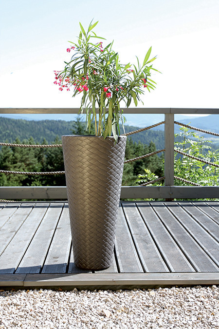 A Matuba Slim kaspó egyedi fonott mintázatával és karcsú formájával különleges megjelenést kölcsönöz minden térnek. A 78 cm magas kaspó ideális választás magasabb növények, pálmák és dekoratív fűfélék számára. Az antracit szín időtlen eleganciát sugároz, míg a fonott textúra modern designt kölcsönöz.