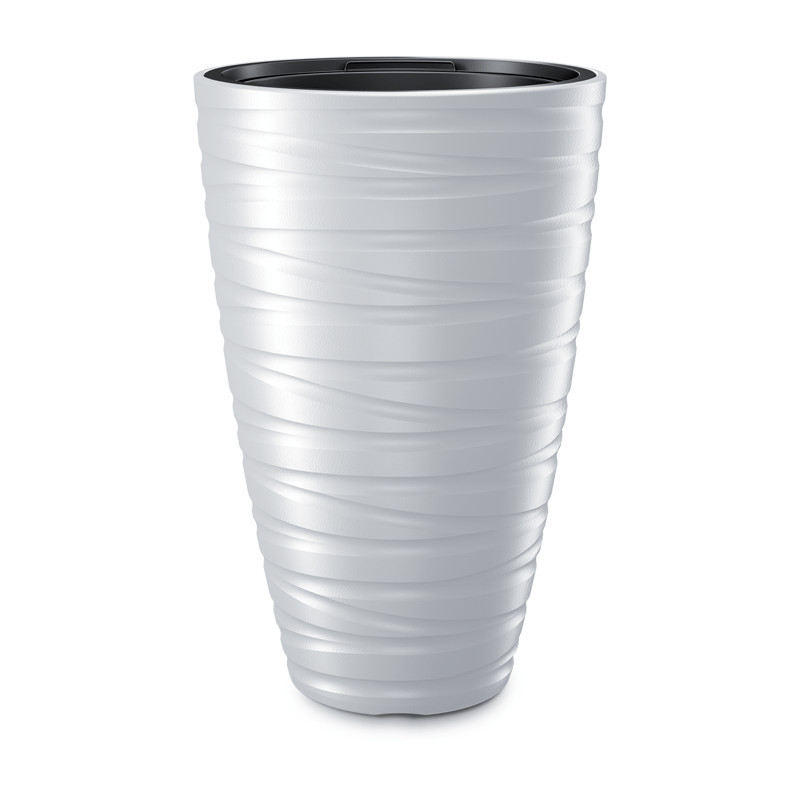 A Maze kollekció fehér kaspója egyedi, horizontális hullámmintázatával különleges designelemként szolgál bármely térben. A 37,5 cm átmérőjű edény ideális választás nagyobb szobanövények és dekoratív növénybeültetések számára.