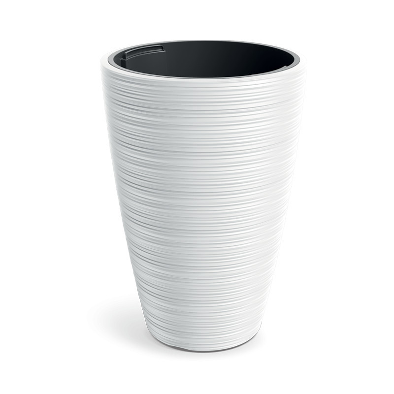 A Vena Round kaspó egyedi, vízszintesen bordázott felületkialakítással és letisztult formavilággal rendelkezik. A magas minőségű anyagból készült edény tökéletes választás mind beltéri, mind fedett kültéri növények számára. A klasszikus fehér szín és a modern dizájn harmonikusan illeszkedik bármilyen enteriőrbe.