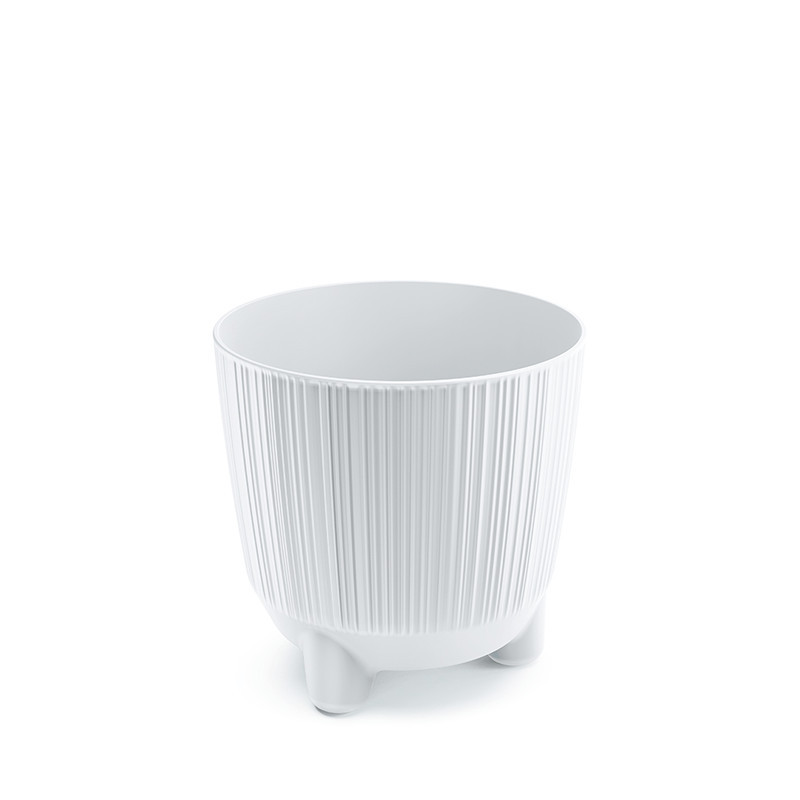 Modern vonalvezetésű, barázdált felületű virágtartó egyedi lábakkal, amely tökéletes választás beltéri növények stílusos megjelenítéséhez.