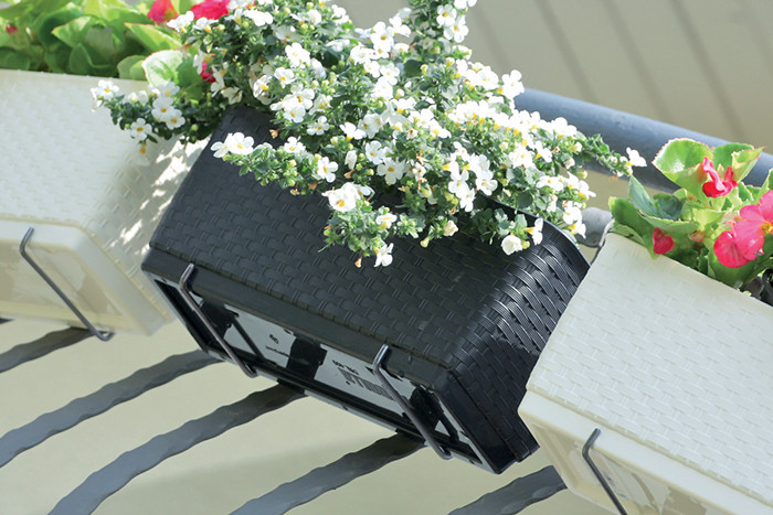 Az erkélyláda alsó részében található víztároló rendszer egyenletes nedvességet biztosít a növényeknek, így ritkábban kell öntözni. A készlet tartalmazza a felszereléshez szükséges erkélykorlát rögzítőket is.