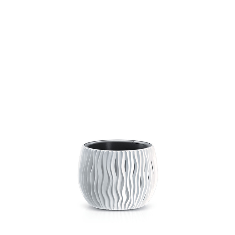 A Sandy Bowl virágtartó sorozat ezt a különleges darabját a kézzel formázott kerámia ihlette. A felületén végigfutó hullámos barázdák játékosan törik meg a fényt, ezzel egyedi megjelenést kölcsönözve a terméknek. A tiszta fehér szín és a modern dizájn tökéletesen illeszkedik bármilyen lakberendezési stílushoz.