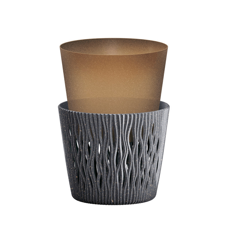 A Sandy Round ECO virágtartó egyesíti a modern design és a természetes megjelenés előnyeit. A különleges, hullámos mintázatú külső borítás egyedi karaktert kölcsönöz a terméknek, míg a belső fekete cserép praktikus és tartós megoldást nyújt.