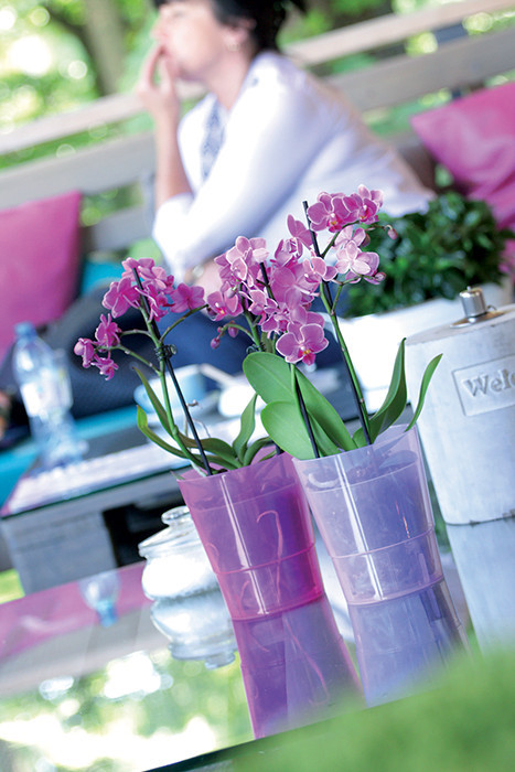 Modern, letisztult formavilága harmonikusan illeszkedik bármilyen enteriőrbe, kiemelve az orchideák természetes szépségét. A jeges lila árnyalat elegáns megjelenést kölcsönöz a növénynek.