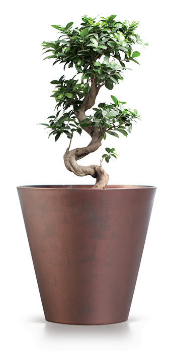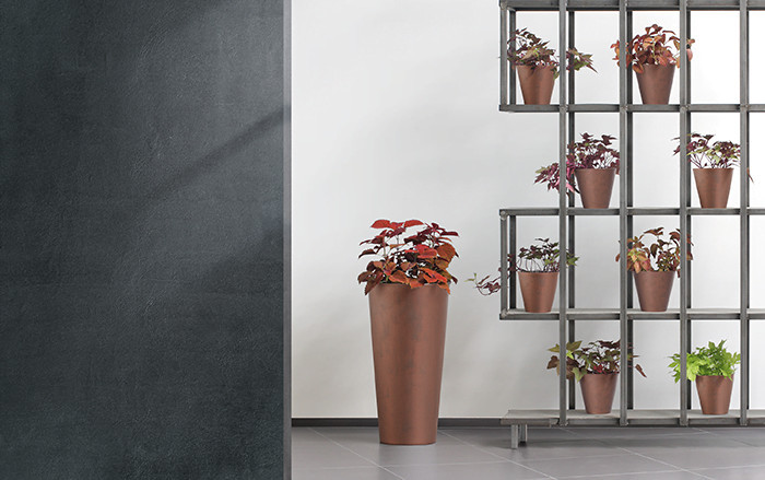 A Tubus virágtartó sorozat kiemelkedő darabja ez a 30 cm átmérőjű kúpos forma, amely Corten acélból készült. A speciális anyaghasználat révén idővel egyedi, vörösesbarna patina alakul ki a felületén, mely természetes védelmet biztosít a további korróziótól.