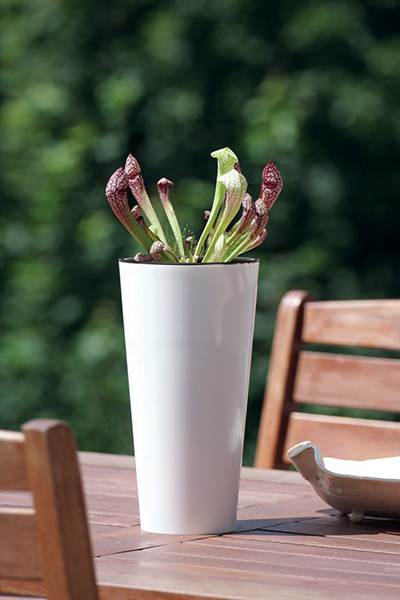 A Tubus Slim Shine kaspó letisztult, modern formavilágával és fényes fehér felületével azonnal a figyelem középpontjába kerül. Karcsú, magas kialakítása ideális megoldást nyújt mind beltéri, mind kültéri növények számára, miközben minimális helyet foglal.