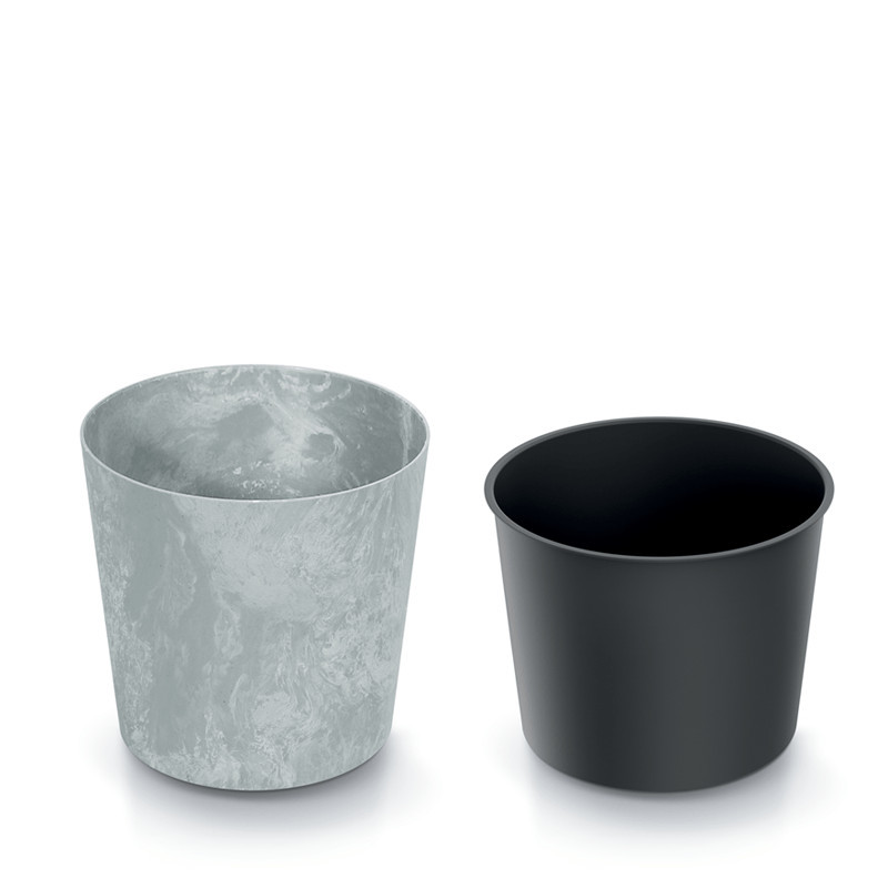 A kaspó különlegessége a beton hatású felületkezelés, amely industrial megjelenést kölcsönöz, ugyanakkor könnyű és tartós műanyagból készült. A beépített belső betét megakadályozza a föld kiszóródását és optimális környezetet biztosít a növények számára.
