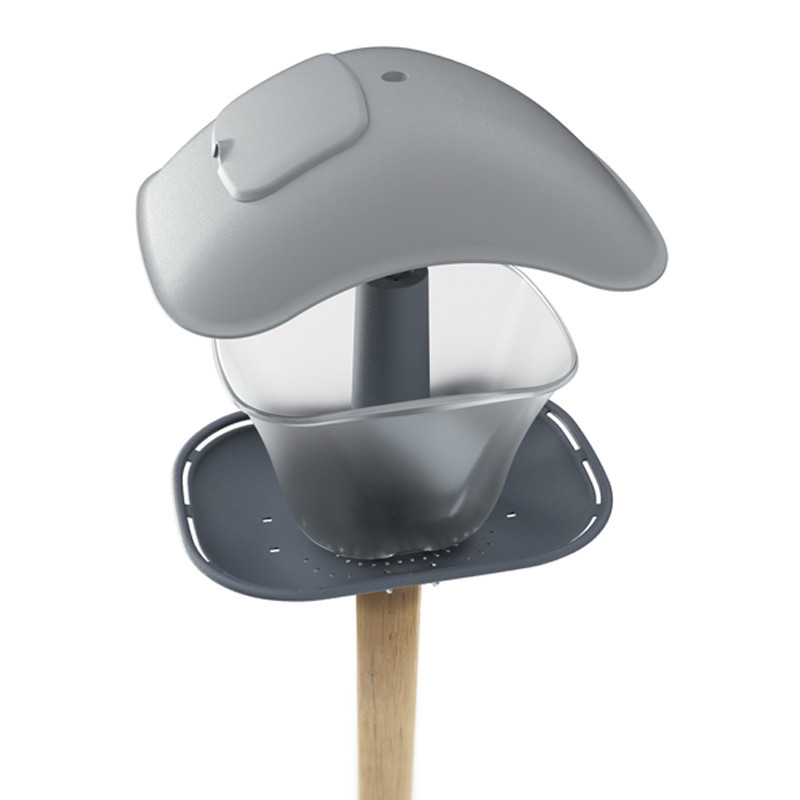 Az etető praktikus kialakítása lehetővé teszi a könnyű feltöltést és tisztítást. Többféle rögzítési móddal telepíthető: felakasztható fára, korlátra erősíthető kábelkötegelővel, vagy akár oszlopra is helyezhető.